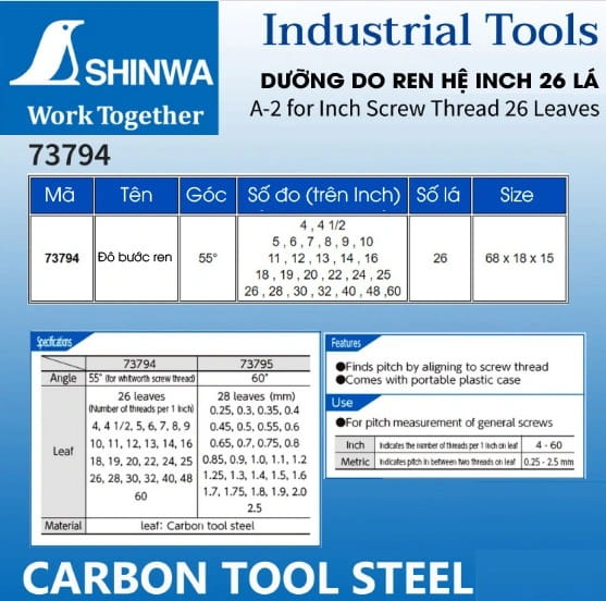 Thông số kỹ thuật Bộ dưỡng đo ren Shinwa 73794