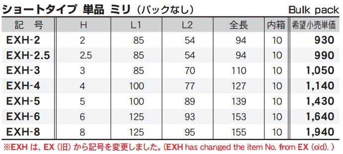 Có các size tùy chọn từ 2mm đến 8mm với mã số tương ứng EXH-2 đến EXH-8 |