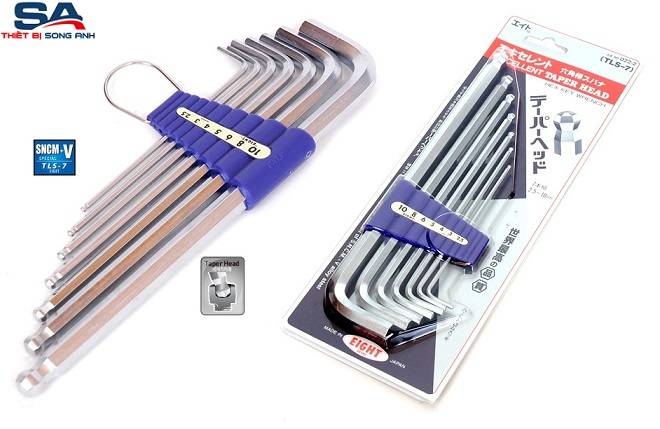 Dòng lục giác với thiết kế TAPER HEAD là loại tiên tiến nhất của EIGHT. Bộ lục giác EIGHT được sản xuất tại Nhật, với đầu bi được thiết kế tăng khả năng tiếp xúc, đây là thiết kế kiểu "TAPER HEAD" |