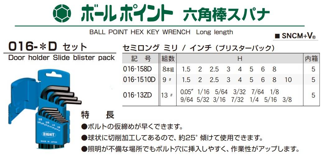 Bộ lục giác EIGHT hệ inch 016-13ZD gồm 13 cỡ, với đủ các cỡ hệ inch cơ bản