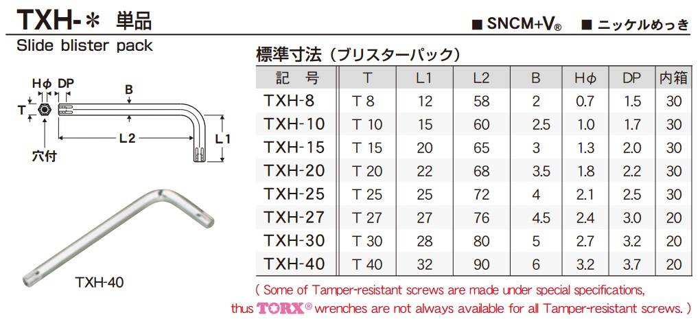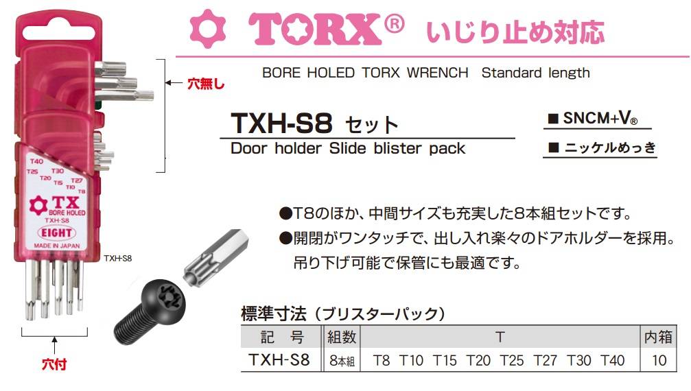 Bộ hình sao EIGHT TXH-S8 được sản xuất tại Nhật, với 8 cỡ từ T8 đến T40, có lỗ giữa.