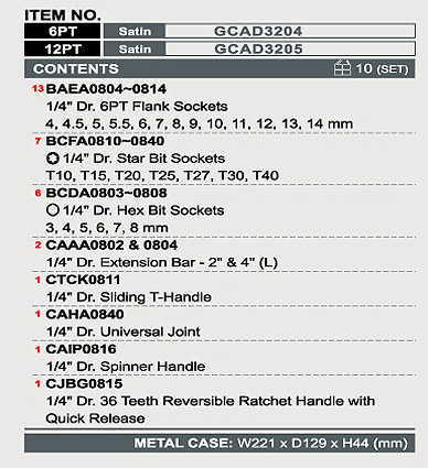 +Đầu tuýp 12 cạnh : 4, 4.5, 5, 5.5, 6, 7, 8, 9, 10, 11, 12, 13, 14mm