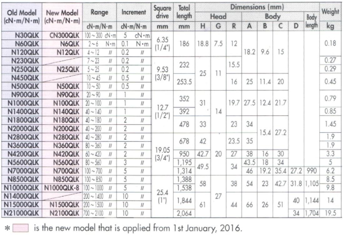 Với loại cờ lê đặt lực trước loại có dải lực lớn nhất là model N21000QLK với dải lực từ 700-2100Nm (đầu nối khẩu loại 1 inch) |