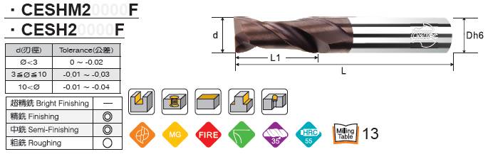 Dao phay ngón hợp kim 2 me CMTéc CESH2 & CESHM2...series