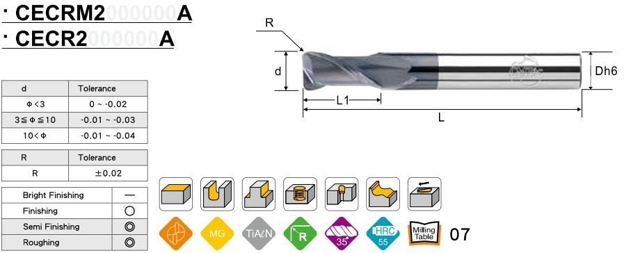 S220 MICRO GRAIN CARBIDE END MILLS- Corner Radius- 2F