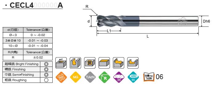 S220 MICRO GRAIN CARBIDE END MILLS- Corner Radius & Long Shank- 4F