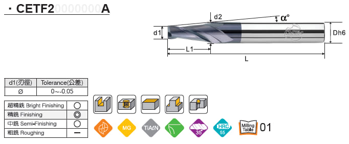 Dao phay ngón hợp kim 2 me CMTéc CETF2