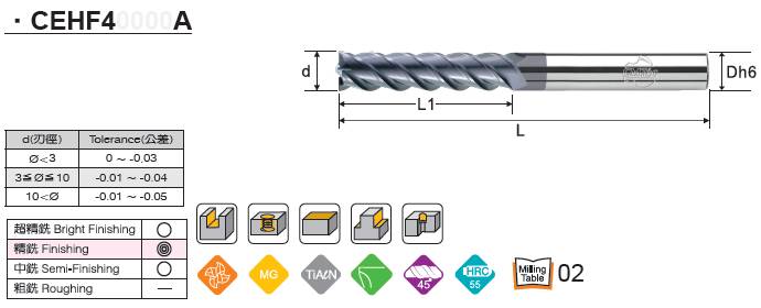 S220 MICRO GRAIN CARBIDE END MILLS- Square Type-High Helix & Long Flute- 4F