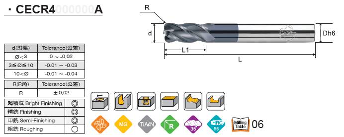 S220 MICRO GRAIN CARBIDE END MILLS- Corner Radius- 4F