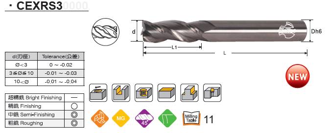 S220 MICRO GRAIN CARBIDE END MILLS-Sinus Edge(Wave) Type For Aluminum-3F