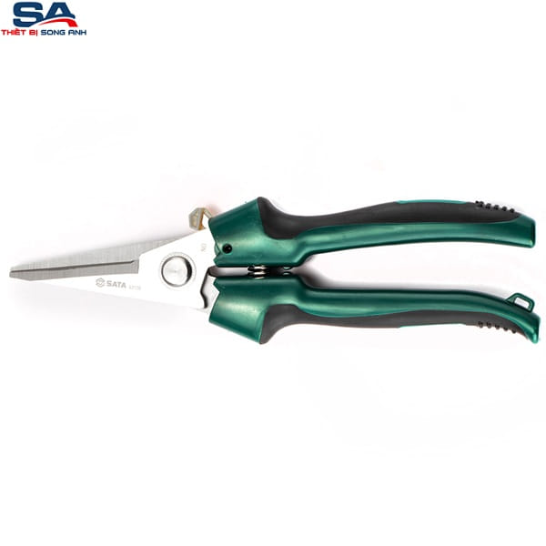 Kéo cắt Sata 93106 là dòng kéo cắt dây điện đa năng 7 inch. Đây là dụng cụ cầm tay chuyên dụng cho thợ điện với thiết kế mũi thẳng và khả năng dây, cắt dây điện, cắt ron, cắt gioăng cao su, cắt da, lưới đánh cá, bìa cứng, tấm nhựa, tấm nhôm mỏng, dây sắt mềm có đường kính dưới Φ0.5mm... Không dùng để cắt dây thép.