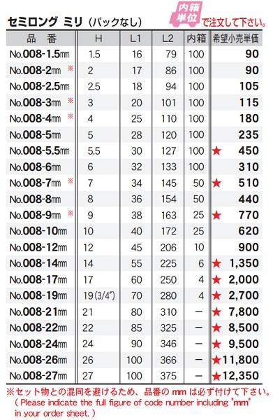 Có các sự lựa chọn từ 1.5 đến 27mm, mã số tương ứng 008-1.5mm đến 008-27mm |