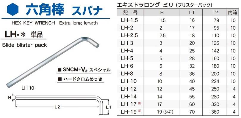 Có các sự lựa chọn từ 1.5 đến 19mm, mã số tương ứng LH-1.5 đến LH-19 |