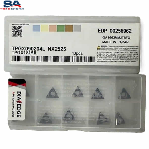 Mũi dao tiện hợp kim Mitsubishi TPGX090204L NX2525 là mảnh tiện tam giác của thương hiệu Mitsubishi Materials, được thiết kế chuyên dụng cho các nguyên công tiện tinh yêu cầu độ bóng bề mặt cực cao...