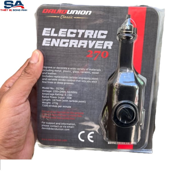 Máy chạm khắc Yunica D270C là máy khắc chữ cầm tay mini dùng điện chuyên dụng để đánh dấu, ghi tên hoặc số lên nhiều loại vật liệu khác nhau như thép, nhôm, đồng, nhựa, kính và gỗ. Thiết bị này được sản xuất tại Đài Loan và hoạt động dựa trên cơ chế rung để tạo ra các nét khắc sắc nét.