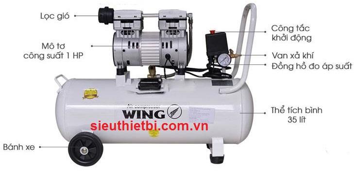 Chi tiết máy nén khí mini không dầu 1HP Wing TW-OF750-35L - Dung tích 35L