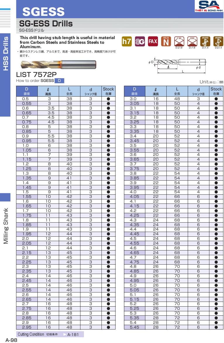 Mũi khoan Nachi SGESS là loại mũi khoan không cần khoan tâm và doa, mũi khoan Nachi L7572P là mũi khoan chuôi trụ chuyên dùng cho máy khoan cầm tay hoặc máy khoan bàn, máy khoan công nghiệp...