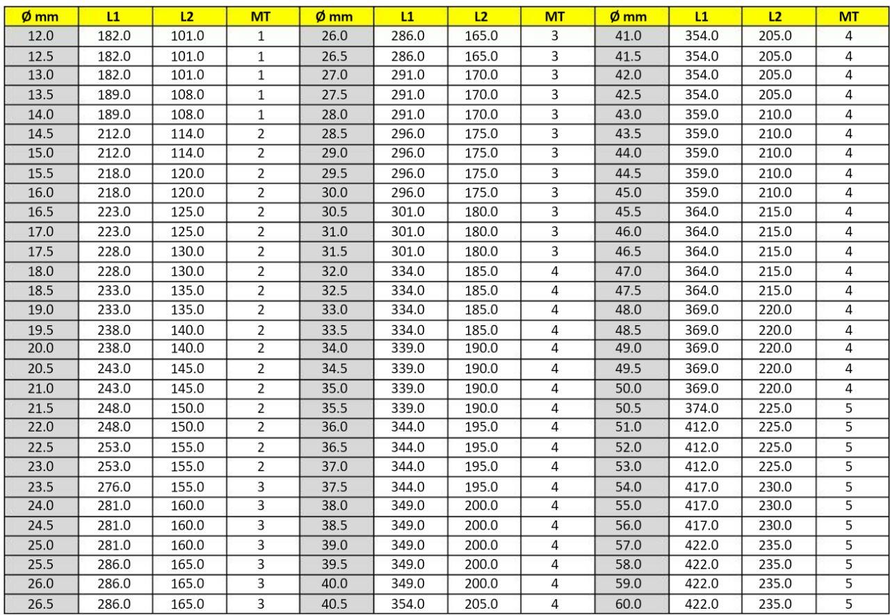Đuôi mũi khoan được thiết kế hình trụ chóp, dẹp đầu tạo khấc gài chắc chắn, phù hợp cho các loại máy bàn, máy CNC, máy Khoan trung tâm và các máy trong cơ khí gia công.
