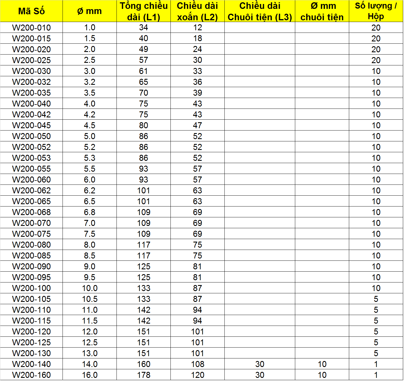 - Mũi khoan sắt thép HSS-R Mã SP WAVES W200, được làm từ thép gió HSS với cấp cao M2, với độ cứng 64 - 66 HRC, chất lượng vượt bậc hơn so với các loại mũi khoan sắt làm từ vật liệu HSS đang có mặt trên thị trường.