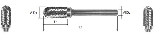 R1103 Series Cylinder Shape With Radius End Type SC (Form C) Solid Carbide Rotary Burr Double Cut