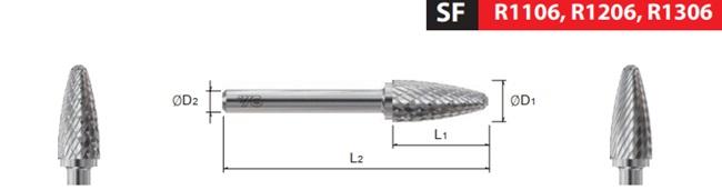 R1106 Series Tree Shape With End Cut Type SF (Form F) Solid Carbide Rotary Burr Double Cut