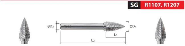 R1107 Series Tree Shape With End Cut Type SG (Form G) Solid Carbide Rotary Burr Double Cut
