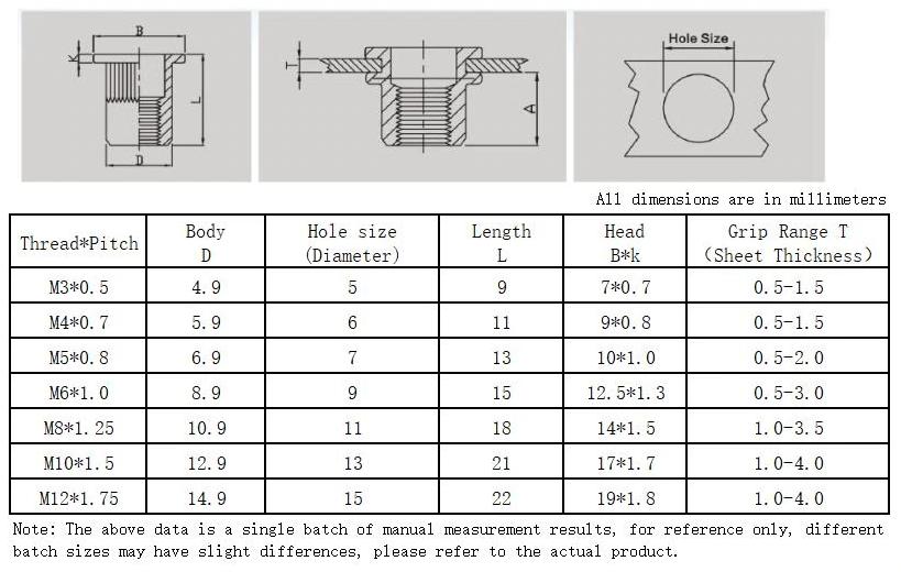 - Đường kính ốc: M3, M4, M5, M6, M8, M10, M12
