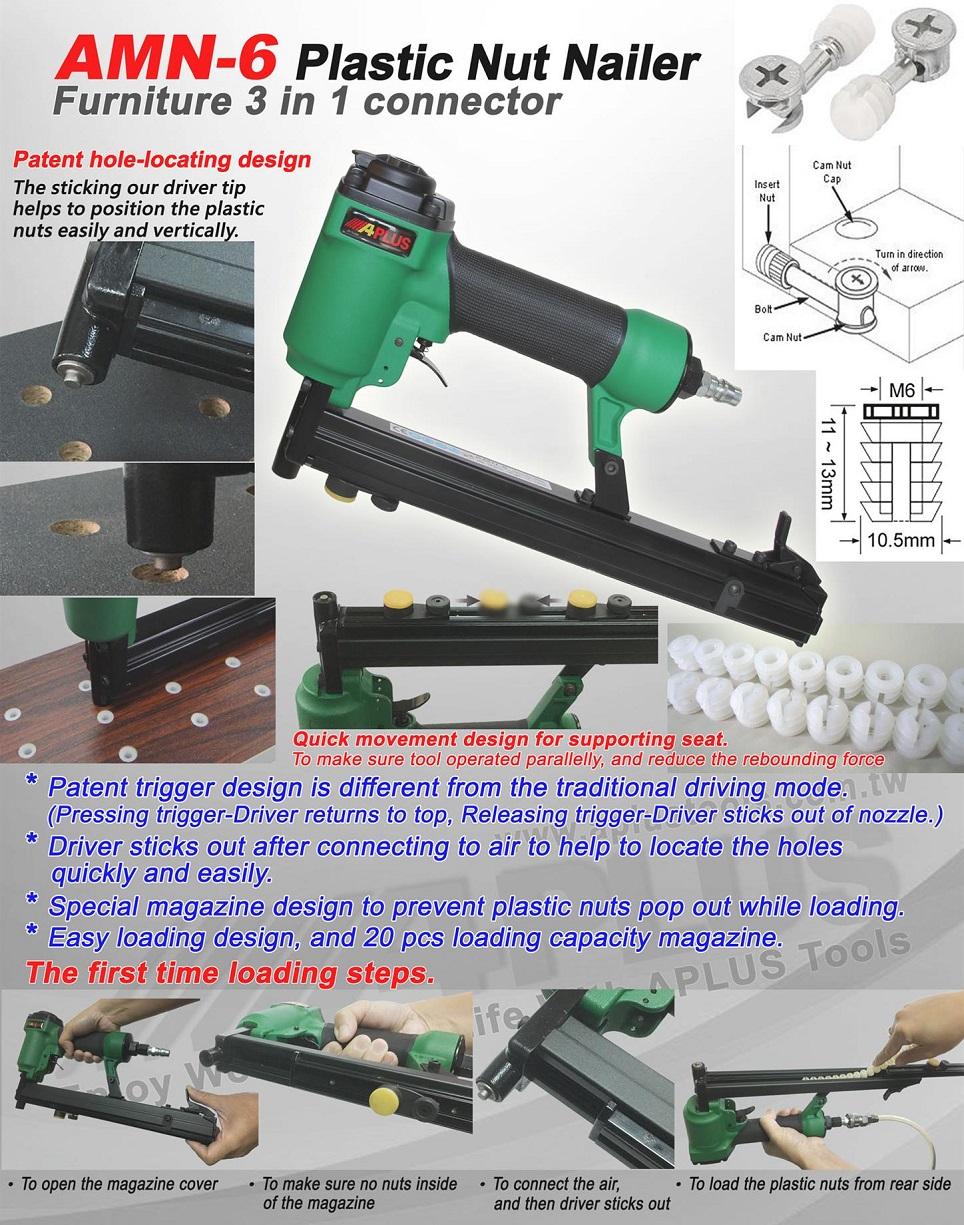 Máy bắn đinh Aplus AMN-6 chuyên dùng bắn chèn đai ốc nhựa lắp ráp, bàn ghế, tủ kệ, đồ nội thất...