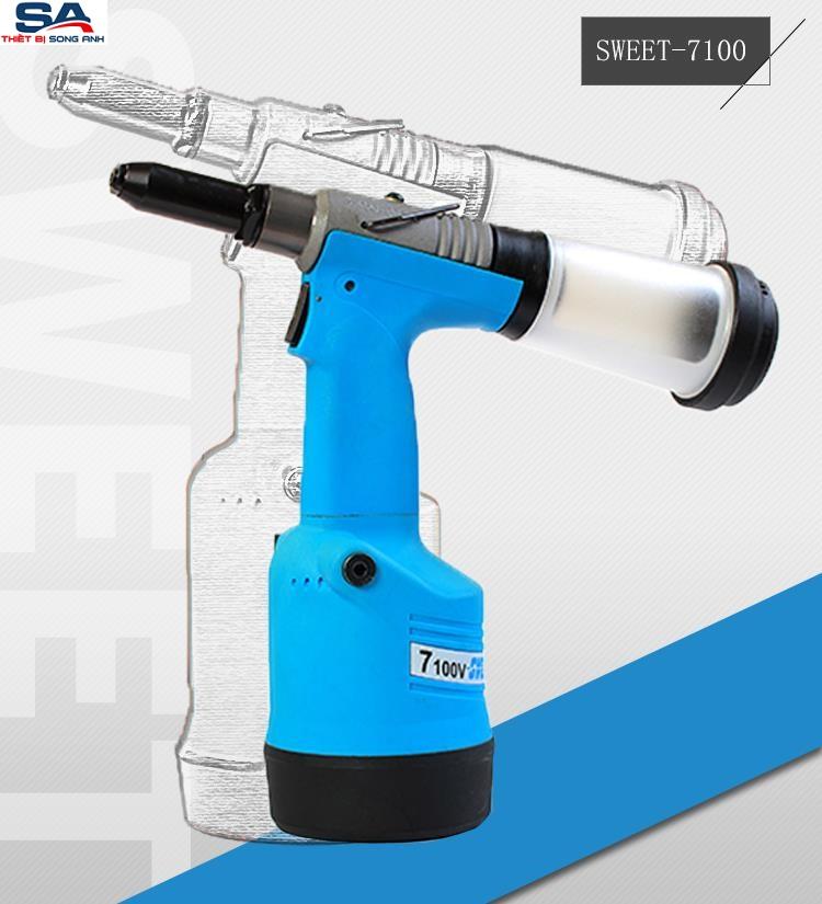 - Súng rút rive tự động hút đinh Sweet-7100 Lực rút mạnh, khả năng rút rive inox lên đến 5mm, máy có chức năng hút tự lấy đinh, sử dụng rất nhanh chóng và hiệu quả cao cho công việc, chỉ cần bóp cò 1 lần là đứt rive, không như những loại súng rive thông thường bóp còn 2 đến 3 lần mới rút xong 1 cái rive